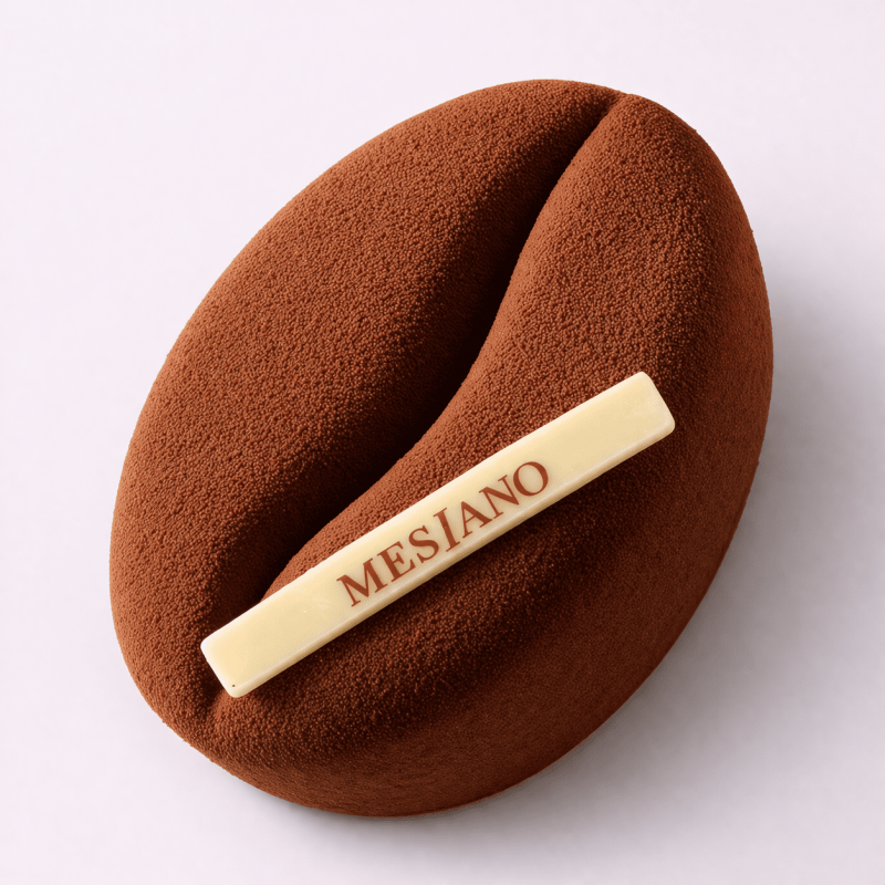 Biscuit chocolat noir, ganache montée au café, crémeux caramel au café et croustillant praliné.